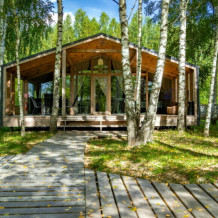 Дом для комфортного семейного отдыха на 6-8 человек. Общая площадь 100 кв.м (24 терраса и 76 кв.м. основная жилая площадь). У вас в распоряжении кухонная зона, душ с тёплыми полами, два туалета, три отдельных спальни, зал с двумя диванами-кроватями, печь-камин, система автоматического поддержания температуры, шторы блэкаут.