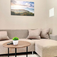 Однокомнатная квартира оснащена всем необходимым для вашего отдыха. Полноценная кухня с плитой и духовым шкафом, холодильником, чайником, микроволновой печью и посудой, ванная со стиральной машиной, есть фен и утюг, двуспальная кровать, двуспальный раскладной диван, два телевизора. Балкон с видом во двор.