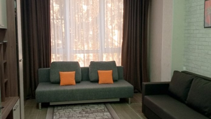 В квартире два удобных дивана-кровати, система хранения, телевизор с приставкой сбербокс, прихожая, оборудованная кухня и обеденная зона, есть сплит система. Ванная комната оборудована душем, стиральной машиной, есть фен и гладильные принадлежности.