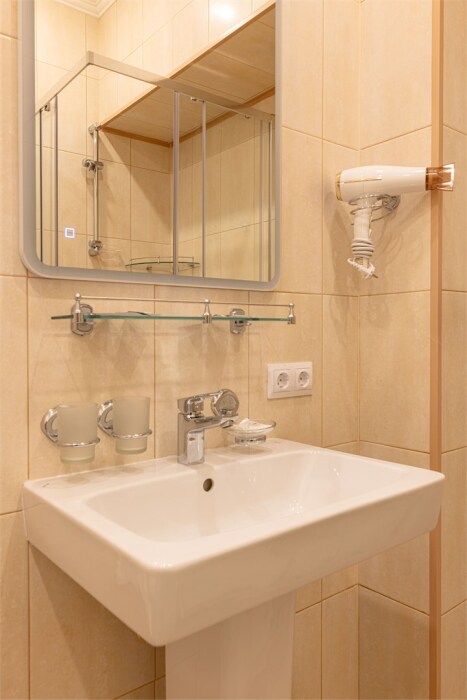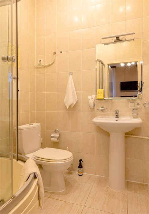 Проживание с животными: разрешено размещение с собаками мелких/средних пород ростом не более 40 см в холке и весом не более 20 кг; кошки, собаки бойцовских пород, рептилии, птицы и дикие животные не допускаются; требуется предоставление ветеринарных документов; размещение с собаками-поводырями разрешается вне зависимости от их породы и веса; максимальное количество питомцев на номер - 1; размещение гостей с домашними животными возможно в любой категории номеров; с собой нужно иметь лоток, переноску, миску, подстилку, корм, намордник, средства для уборки, любимую игрушку питомца, гигиенические пакеты.
