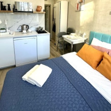 Квартира-студия оснащена всем необходимым для комфортного проживания:чистое постельное белье из прачечной, кроватью, шкафом, телевизором, обеденным столом, кухней со всей необходимой техникой и посудой, а также стиральной машиной.