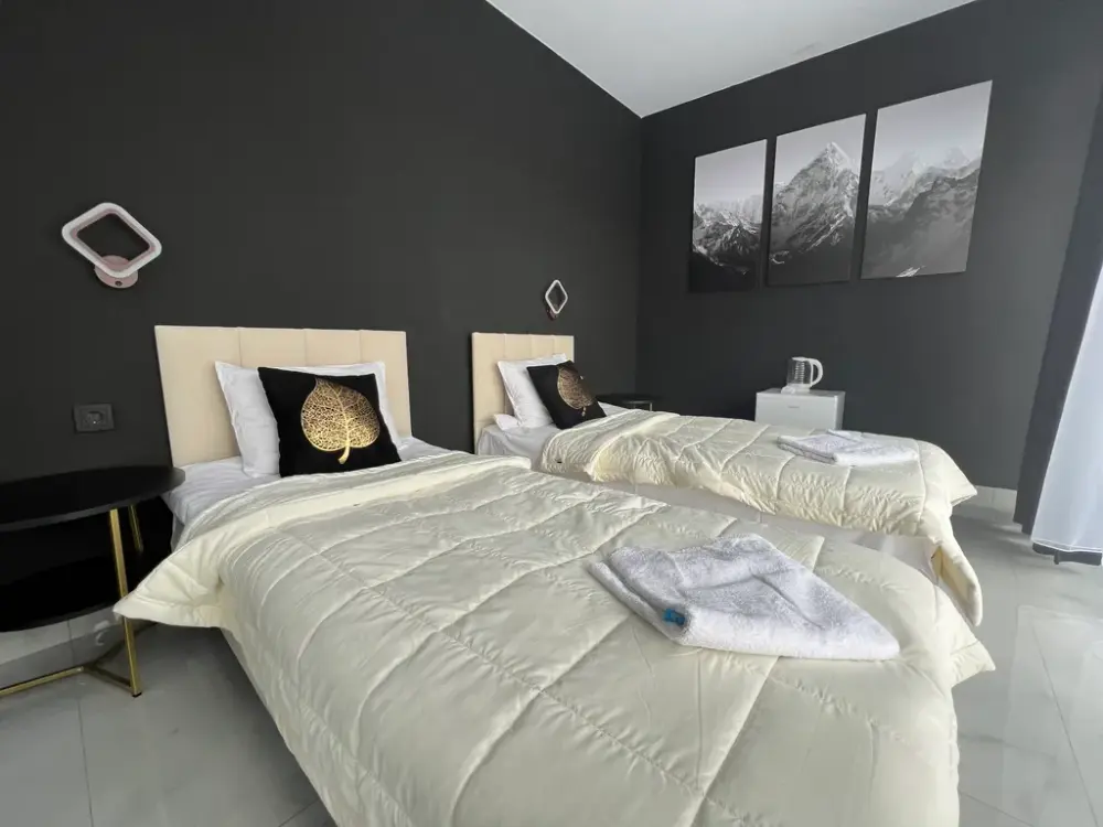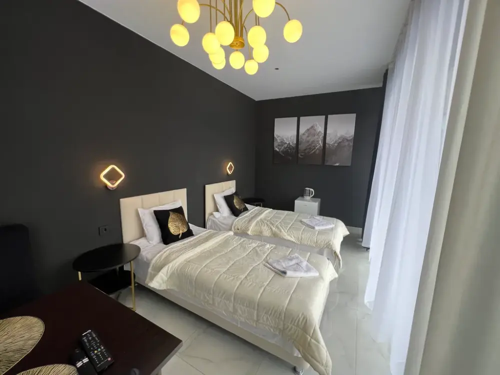 В здании находится магазин сувениров. Удoбная лoкация, в шаговой доступности магазины, кафе и аптеки. Прогулка до пешеходного экологического маршрута Чегетский Поворот-Водопад Азау занимает 10 минут, до парка альпак - 20 минут. До горнолыжного комплекса «Чегет» расстояние составляет 2 км, до горнолыжного курорта «Эльбрус» - 3 км.