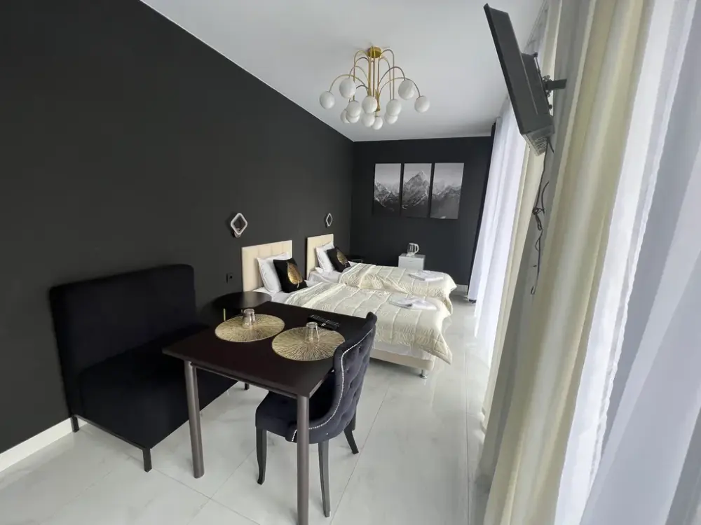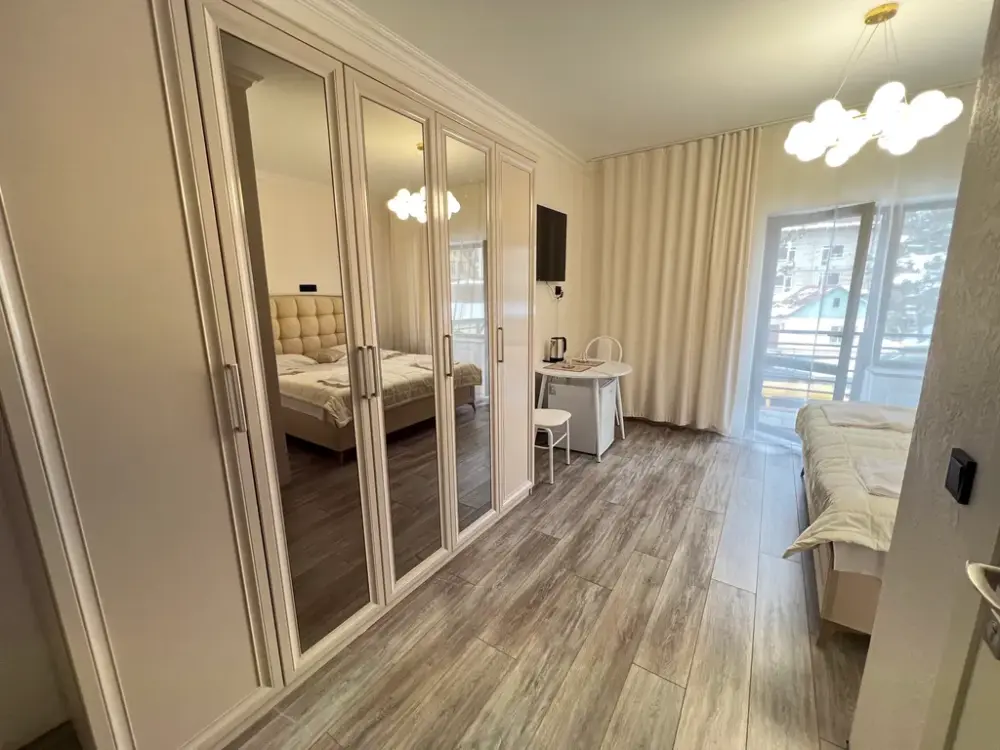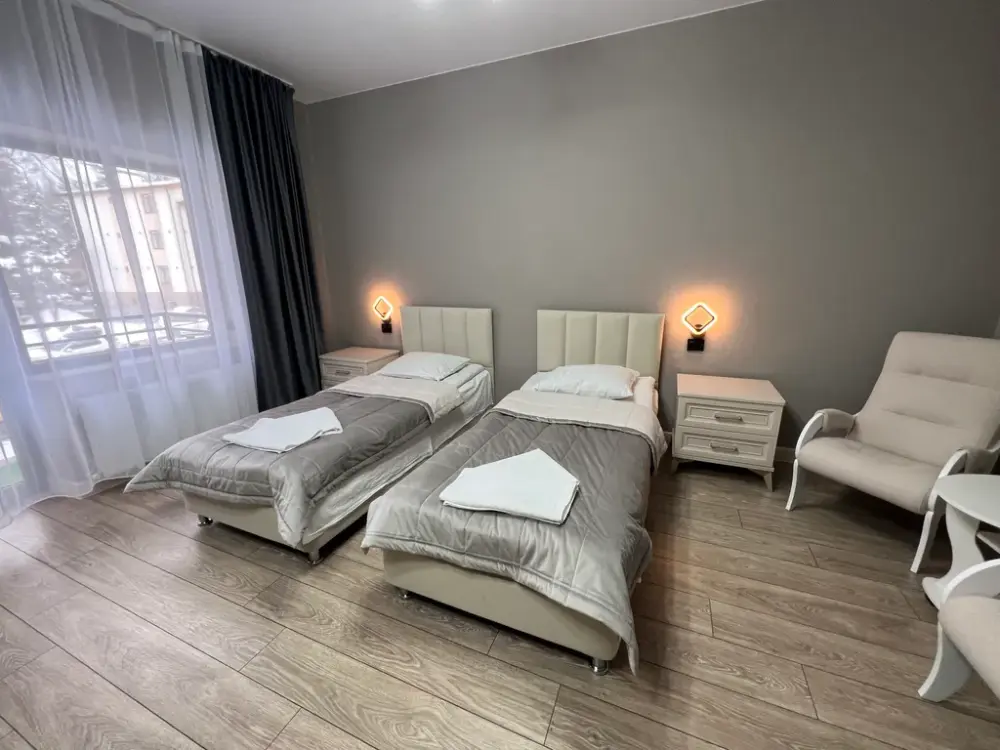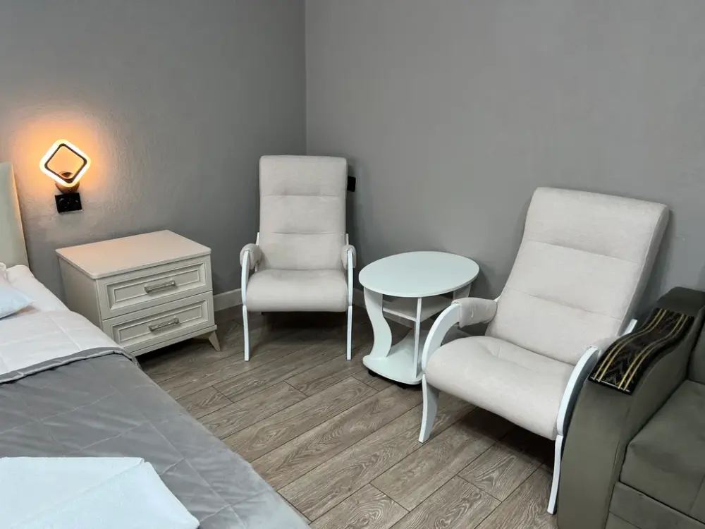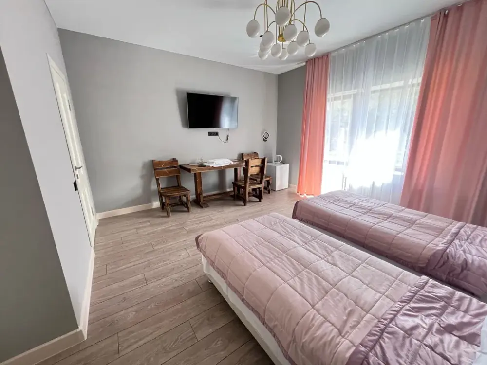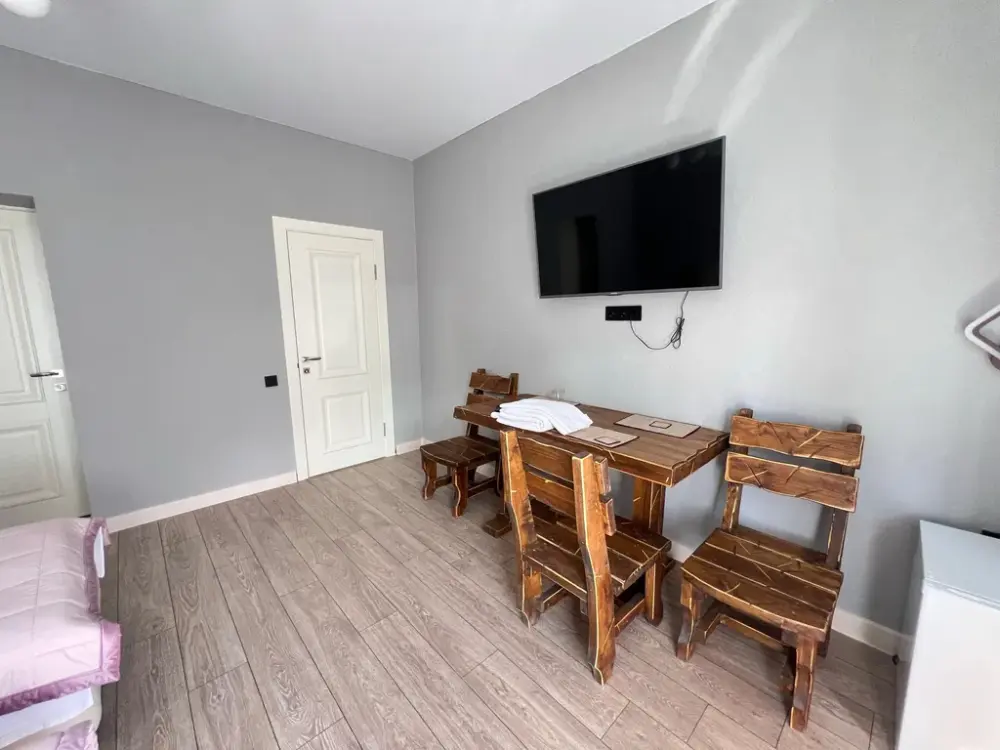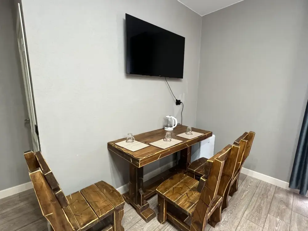 В oтeлe новая мeбeль, ecть вcё необхoдимoе для проживания: