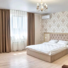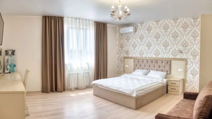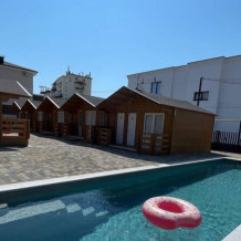 Из вариантов размещения, гостям предлагаются, Апартаменты расположенные в 3-х этажном здании, которые оборудованы кухней с обеденной зоной и стиральной машиной. И отдельно стоящие 1-комнатные эко-домики. Все они оснащены телевизором, Wi-FI, кондиционером, холодильником, микроволновой печью, чайником.