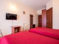 Однокомнатный номер расположен на первом этаже. В номере три односпальные кровати, шкаф, журнальный столик, вешалка. А так же холодильник, телевизор, кондиционер, туалет и душевая кабинка.