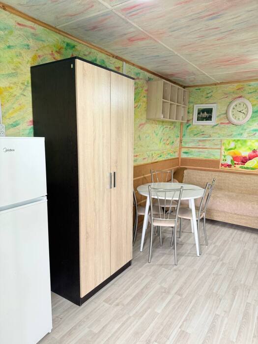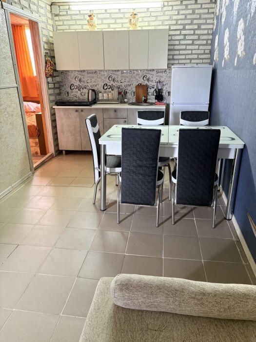 Просторный номер в частном доме, оборудованный всеми удобствами, включая кухню и собственную веранду в тени, где вы можете комфортно проводить время. В душевой установлена стиральная машина, что является значительным преимуществом для гостей.