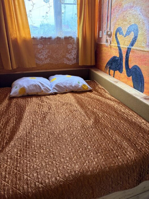 Находится в гостевом доме с большой территорией двора. Сезонные фрукты можно есть прямо с дерева. Предусмотрены мангальная зона, беседки для отдыха, парковочные места.