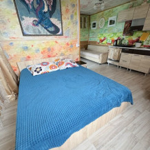 Предлагаем уютные студии и 2-комнатные номера на 4−5 спальных мест, каждый с собственной кухней, бытовой техникой, кондиционером и Wi-Fi.