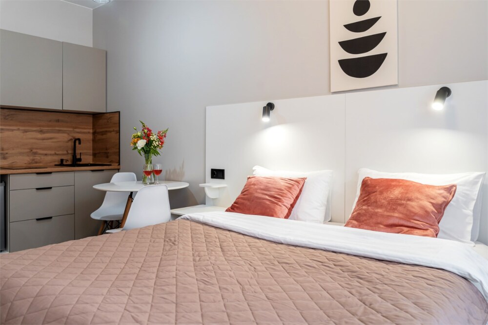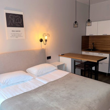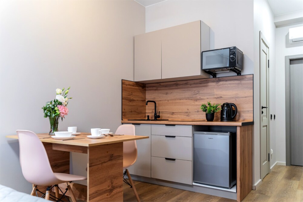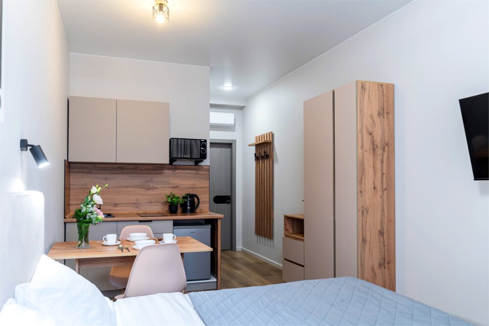 Для бронирования предлагаются номера категорий: Эконом, Стандарт и Апартаменты с кухней. Номера категории Эконом находятся в соседнем здании от ресепшена на 2 и 4 этаже. В общей зоне Вы можете воспользоваться микроволновой печью, гладильной доской, плитой для приготовления пищи.