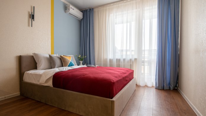 - Удобную двуспальную кровать с ортопедическим матрасом и раскладной диван для двух дополнительных мест.
