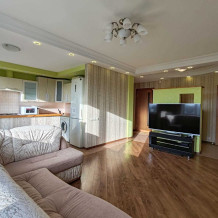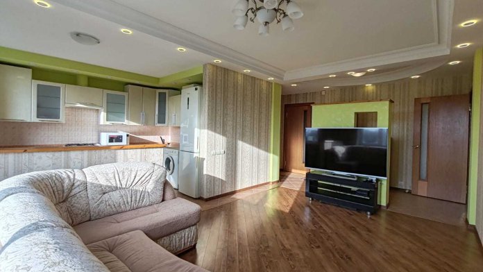 Квартира со свежим ремонтом, оснащена современной техникой и всем необходимым для жизни гостей. В квартире имеется безлимитный интернет, WI-FI, телевизор. В кухне имеется кухонный гарнитур, микроволновая печь, электрочайник, а также необходимая посуда, чай. В ванной есть стиральная машина-автомат.