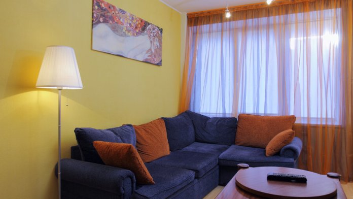 Просторный двухкомнатный номер разделён на гостиную и спальню с большой двуспальной кроватью.