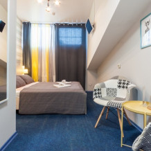 В номере: одна двухспальная кровать, телевизор с плоским экраном, собственный санузел с душем, стол, кресла, тумбочки, шкаф/гардероб для одежды, зеркало. Комплект полотенец и индивидуальные косметические средства для каждого гостя. Приветственный напиток в день заезда (в зависимости от сезона).