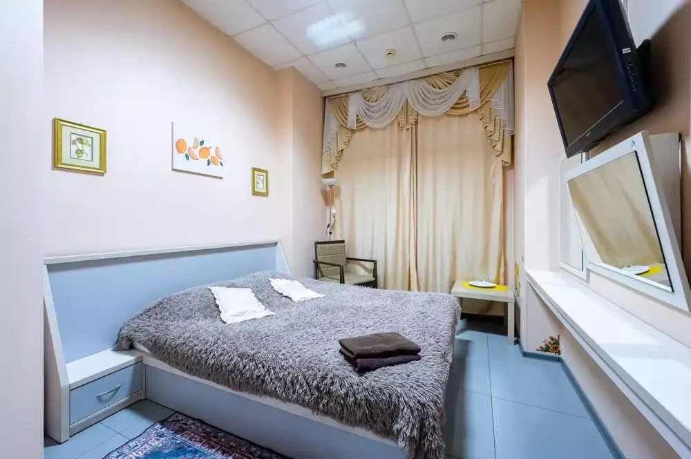 Двухместный номер комфорт с двуспальной кроватью и ванной.