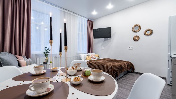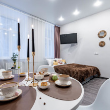 В комнате 2 двуспальных раскладных дивана, обеденная группа, и кухонная зона. Бесплатный Wi-Fi. В прихожей зоне в шкафу-купе есть гладильная доска и сушилка для белья, утюг. В ванной комнате мы приготовили для Вас предметы личной гигиены: шампунь, мыло, гель для душа, фен, набор чистых полотенец. В зоне туалета установлен бойлер и стиральная машина.