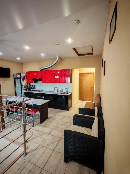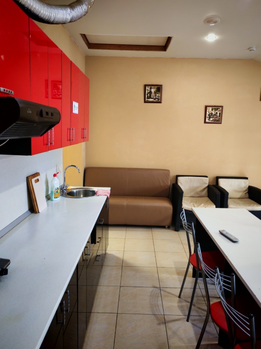 На этаже имеется общая кухня с холодильником, электрической плитой, чайником и необходимой посудой для приготовления пищи.