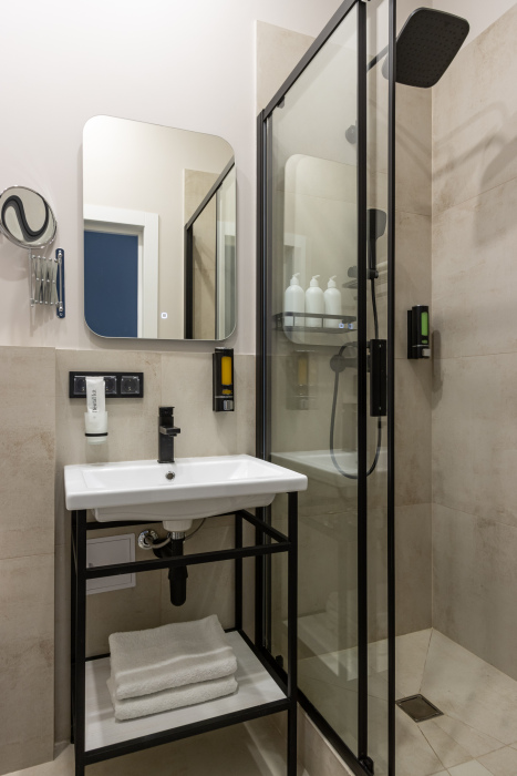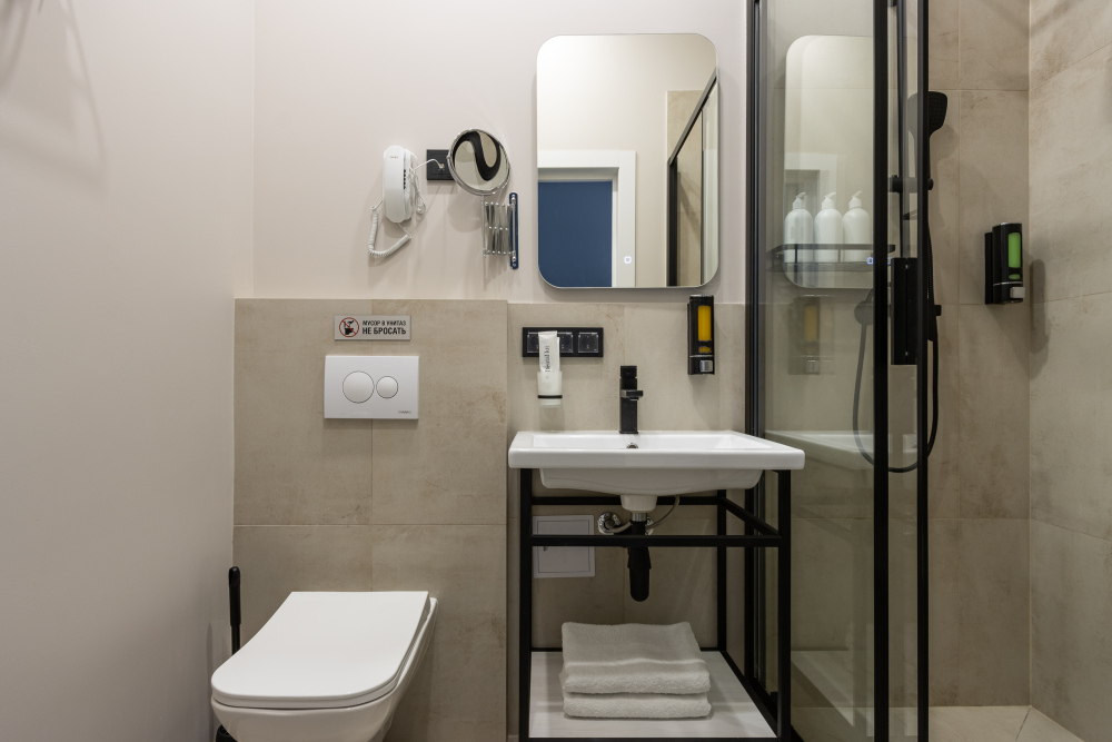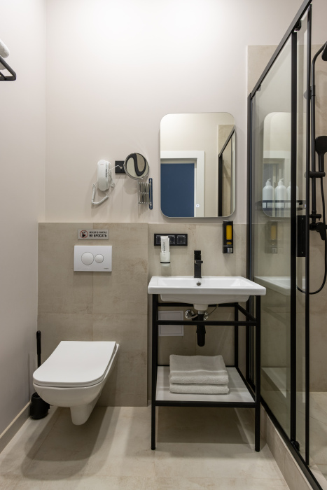 Ванная комната оснащена: душевой кабиной, феном, туалетными принадлежностями.