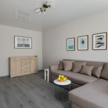В интерьере используется большое количество картин и постеров, что определяет неповторимый дизайн квартиры. Для удобства гостей комфортабельная двуспальная кровать и большой раскладной диван. Комнаты изолированы, на просторной кухне, есть вся необходимая бытовая техника. К услугам гостей постельное белье, полотенца, посуда, необходимая техника, гигиенические принадлежности, телевизор и высокоскоростной Wi-Fi, стиральная машина, сушилка, фен, утюг, гладильная доска.