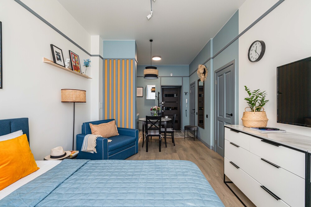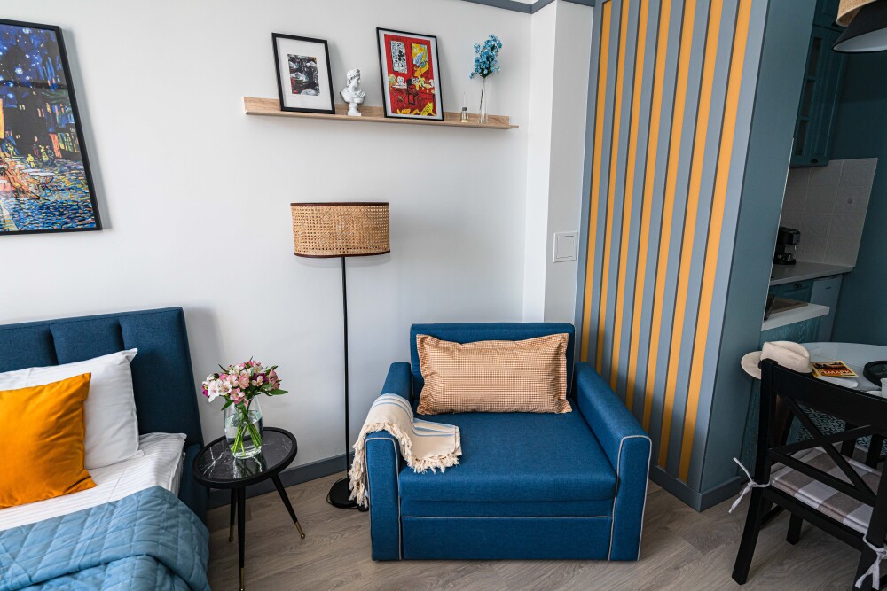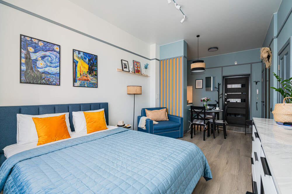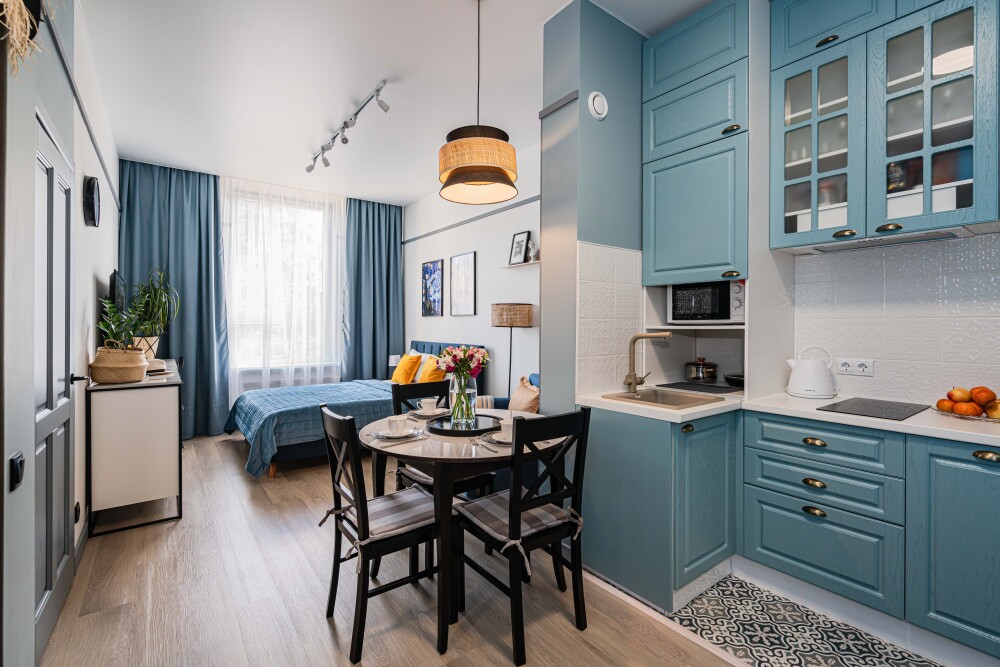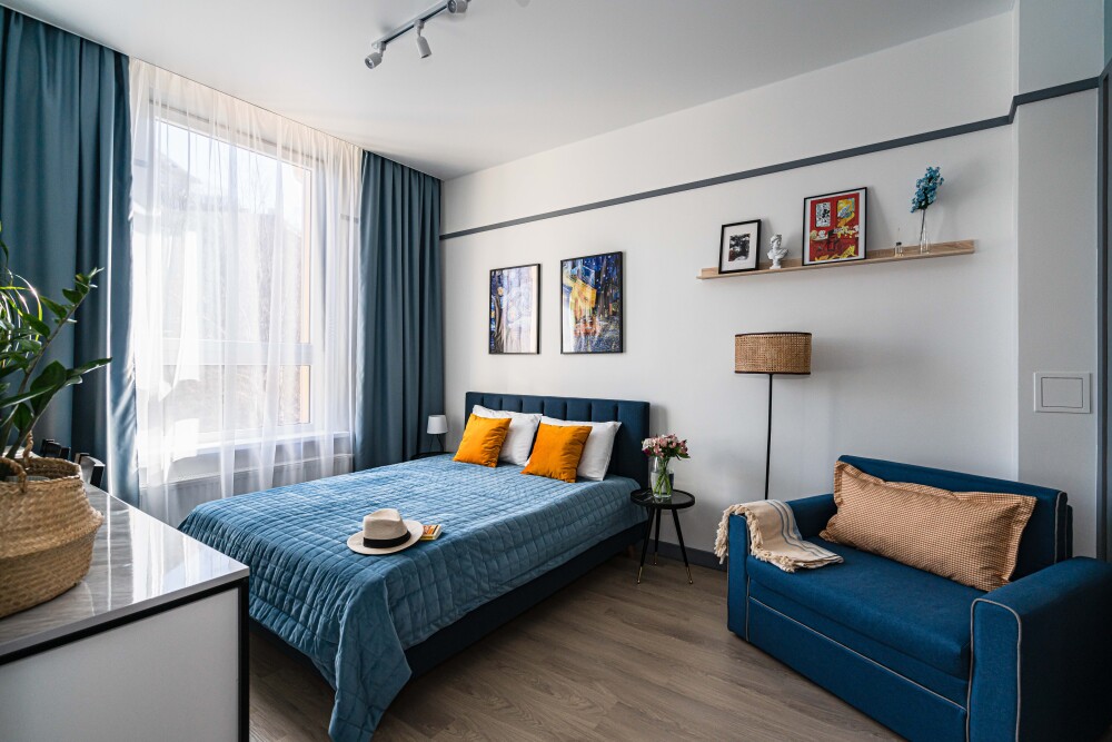 Просторные апартаменты «Балтийский вояж «— кухня-гостиная + отдельная спальня. Топовая локация в центре Светлогорска — всё рядом: прогулки, море, концерты, озеро.