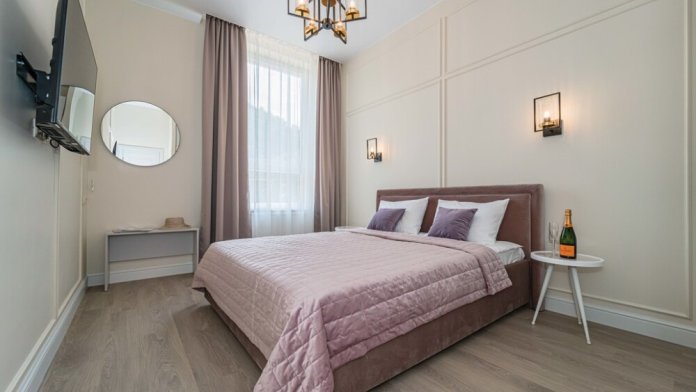 Апартаменты включают в себя отдельную спальню и общую комнату с кухней. Для удобства гостей две комфортабельные двуспальные кровати. На кухне, есть вся необходимая бытовая техника. К услугам гостей постельное белье, полотенца, посуда, необходимая техника, гигиенические принадлежности, телевизор и высокоскоростной Wi-Fi, стиральная машина, сушилка, фен, утюг, гладильная доска.