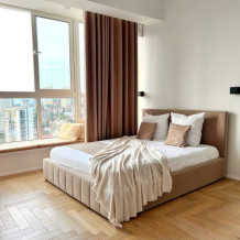 В зоне спальни для Вас будет подготовлена широкая кровать 160 на 200 с ортопедическим матрасом, а на окнах - шторы blackout для Вашего комфортного сна. Так же есть диван-кровать 180 на 70.