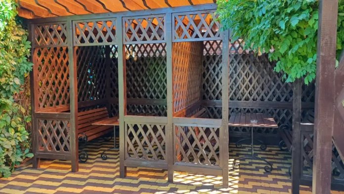 На территории гостевого дома имеются мангальная зона, беседки для отдыха и качели, общая кухня для приготовления пищи и парковка.