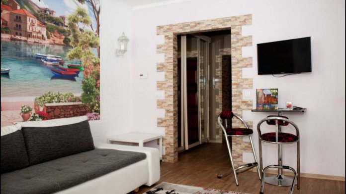 Апартаменты предполагаются для двоих гостей, но есть еще в лоджии раскладной диванчик, где теплыми деньками также можно спать. В апартаментах ждет: ТВ и wi-fi, посуда, фен, утюг, чайник, стиральная машина, СВЧ-печь, газовая плита, холодильник постельное белье и полотенца. В просторной лоджии с панорамным обзором приятно отдыхать с чашечкой чая или кофе, читать рекомендации по экскурсиям, историю Светлогорска и другую интересную информацию про область (журналы предоставляются для гостей).