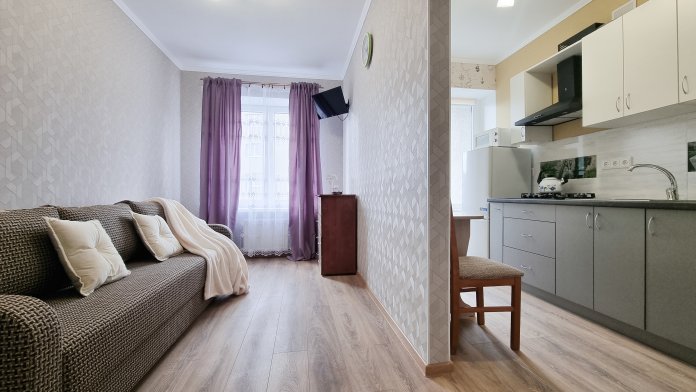 Однокомнатная уютная квартира в новом доме с лифтом. Тишина и гармония в самом центре Светлогорска 2. Прогулочным шагом до моря 25-30 минут, до фока - 5 минут, прекрасное совмещение приятного с полезным. Физкультурно-оздоровительный комплекс располагает бассейном, ледовой ареной, футбольным полем, тренажёрным залом. Рядом продовольственные магазины «Виктория» и Spar.
