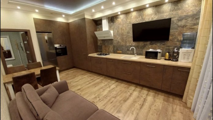 В апартаментах предоставлены: 4 полотенца, 2 комплекта постельного белья, фен, шампунь, гель для душа, мыло для рук, кондиционер, утюг, холодильник, стиральная машина, посудомоечная машина, микроволновая печь, кофемашина, кулер с питьевой водой, Wi-Fi.