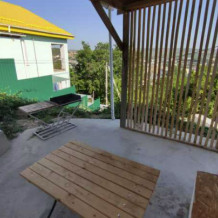 Ремонт новый. Вид на город, виноградники и горы. На этаже 3 больших спальни (видовые спальни кухня), санузел 25 кв.м. Кухня-студия 70 кв м., просторный холл, 36 кв.м терраса, хозблок. Большая крытая терраса с мангалом. Вся бытовая техника новая, стиральная машина, телевизор. Климатическая система, тёплый пол. Мебель в классическом стиле, новая из массива. Бронзовая сантехника, гигиенический душ, проведен интернет. Охрана пульт. Видеонаблюдение. Электро полы отопление (электро) и кондиционеры. Сад-огород. Мангальная зона. Стоянка на 2 автомобиля. Зона для шезлонгов и спорта. лавочка с панорамным видом. Проведены все коммуникации вода, электричество, канализация.