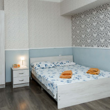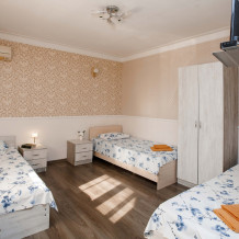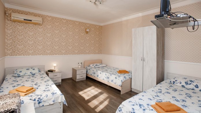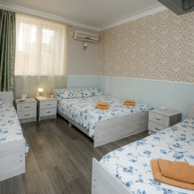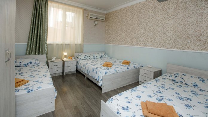 В трёхэтажном коттедже находятся уютные семейные номера с удобствами. Все номера оборудованы телевизорами, кондиционерами, комфортными спальными местами, удобства в номерах.