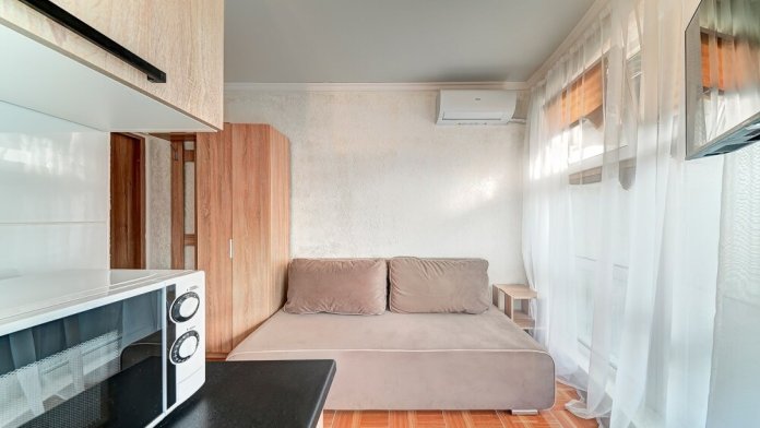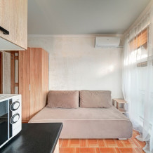 Номер оснащён раскладным диваном, столиком, мини-кухней, шкафом для одежды, беспроводным интернетом WI-FI, холодильником, телевизором с плоским экраном и Smart TV и системой автоматического кондиционирования.