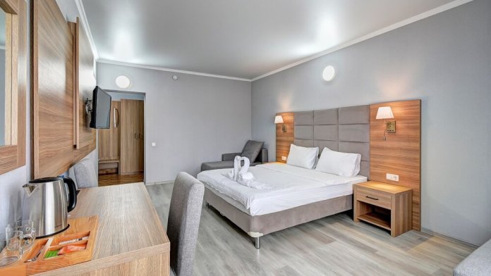 Для размещения гостям предлагают номера категорий: Стандарт, Комфорт, Семейный, Делюкс и Люкс. Все они оснащены кондиционером, телевизором, холодильником, чайником и феном. Имеются номера с балконом и террасой.