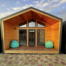 На территории 5 деревянных домиков, бассейн 8*4, с детской зоной, места для отдыха на свежем воздухе, лежаки и подвесные качели, мангал и столы.