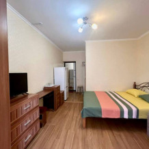 В номере: 2-спальная кровать, диван-кровать, телевизор, холодильник, большая открытая терраса, чайник, посуда, постельное белье и полотенца, туалетные принадлежности.