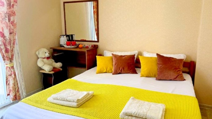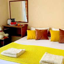 В номере: терраса-балкон, 2-спальная кровать, кресло-кровать, шкаф, стол, чайник, посуда, постельное белье, полотенца, туалетные принадлежности.