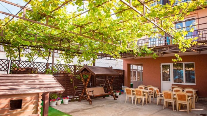 На территории расположена кухня-столовая, детская игровая комната, дворик с качелями.