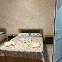 Мы расположены около пляжной зоны, вокруг множество кафе, столовых и магазинов. Для наших гостей мы предлагаем уютные номера, полностью оборудованные для комфортного проживания. В каждом номере есть фен, шкаф для хранения вещей. Также есть ТВ, WI-FI, холодильник, имеется кондиционер и ванная комната.