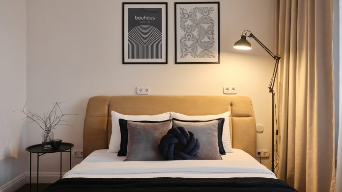 два раздельных спальных места: удобная кровать 160×200 и диван 140×200;