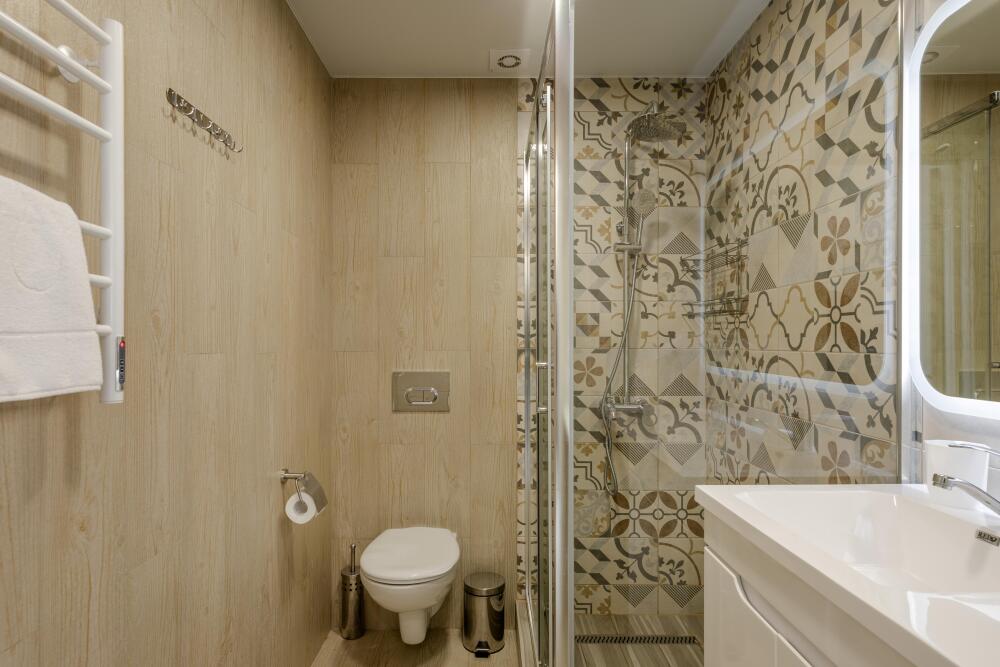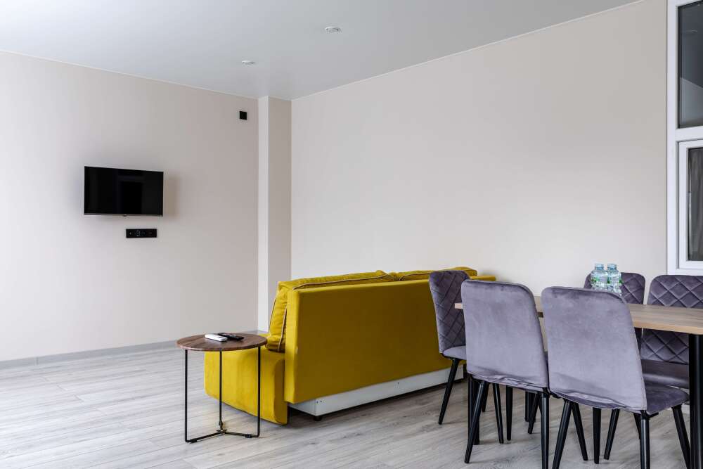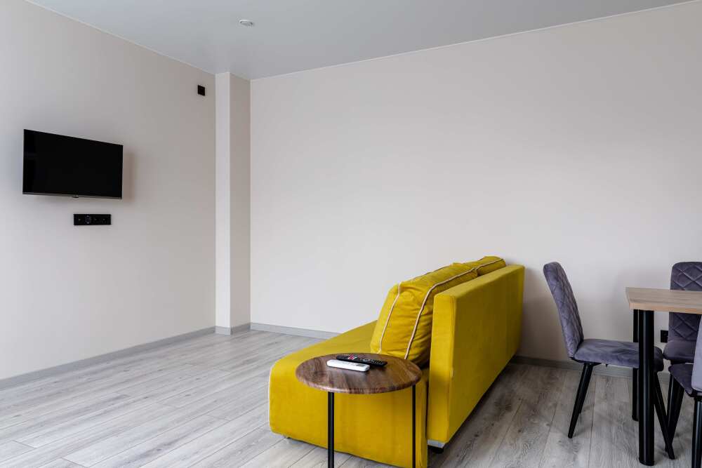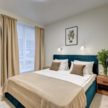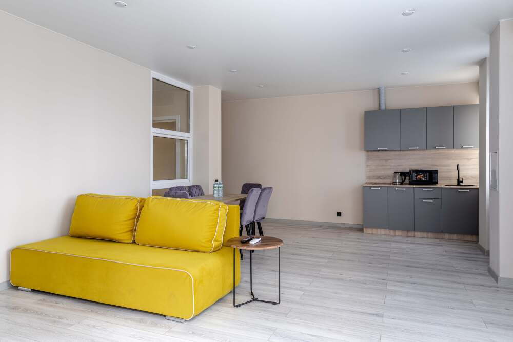 Для размещения гостям предлагают апартаменты категории Комфорт и Студия. В каждом из них есть все необходимое для комфортного проживания: кровать, диван, кондиционер, шкаф для вещей, кухня со всей необходимой техникой и посудой, собственная ванная комната. Предоставляются туалетно-косметические принадлежности. За доп. плату предоставляется халат на все время проживания.