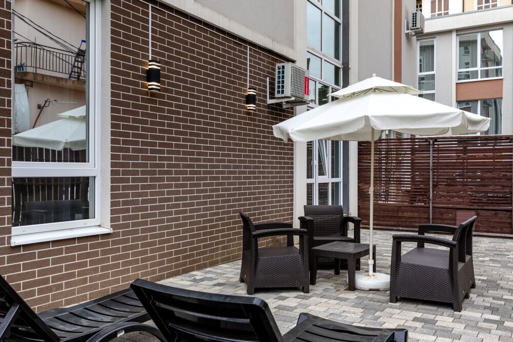 Просторный номер с отдельной спальней и кухней-гостиной с выходом из номера на собственную террасу. На террасе для вашего комфорта есть садовая мебель и шезлонги для загара. На территории есть открытый круглогодично подогреваемый бассейн. Отель расположен в тихом и уютном районе, неподалеку от аэропорта Сочи и всего в 20 минутах ходьбы от моря и железнодорожного вокзала. До Сочи-Парка и знаменитых Олимпийских объектов так же можно доехать за 25 минут на автобусе. Пешком можно прогуляться до Океанариума Discovery World Aquarium и Адлерского дельфинария. Рядом с отелем есть магазин Магнит.