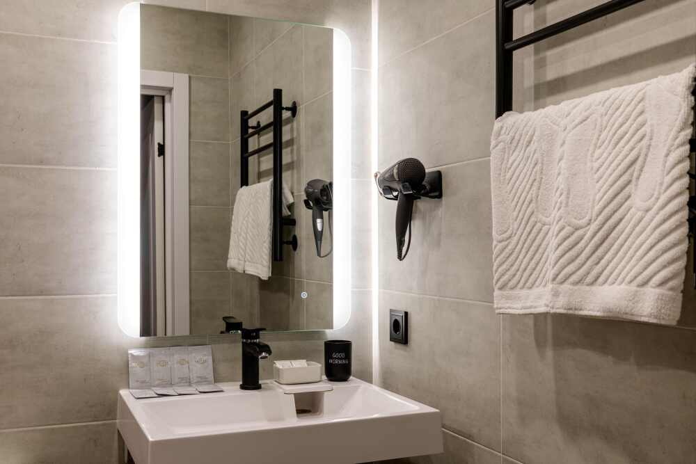 Просторный семейный номер с двумя спальнями и большой кухней-гостиной. Особенность номера межкомнатное окно. Отдельный вход в номер с террасы. На территории есть открытый круглогодично подогреваемый бассейн. Отель расположен в тихом и уютном районе, неподалеку от аэропорта Сочи и всего в 20 минутах ходьбы от моря и железнодорожного вокзала. До Сочи-Парка и знаменитых Олимпийских объектов так же можно доехать за 25 минут на автобусе. Пешком можно прогуляться до Океанариума Discovery World Aquarium и Адлерского дельфинария. Рядом с отелем есть магазин Магнит.