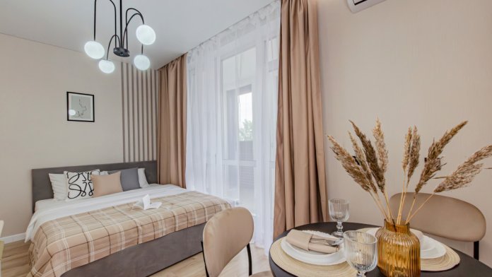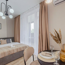 Уютная студия с новым дизайнерским ремонтом в новом ЖК «Открытие», расположенная рядом с новым Вознесенским Трактом, в 15 минутах езды до центра Казани, подходит для размещения 2-х гостей.