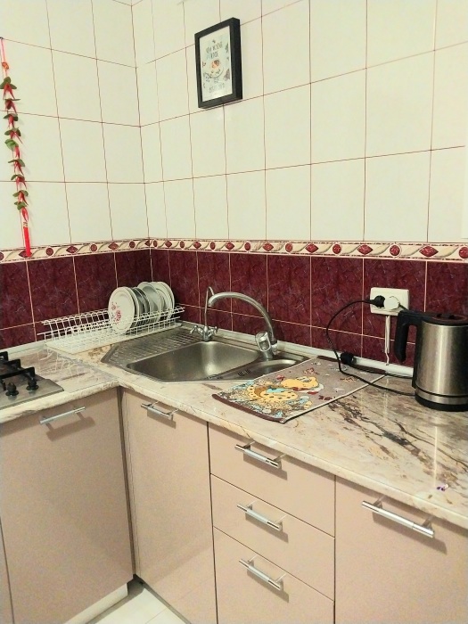 Квартира оборудована всем необходимым. Для гостей бесплатный интернет. Комфортные новые спальные места, телевизор, кондиционер во всех комнатах. мебель, всем гостям предоставляется бесплатное чистое белье и полотенца для лица. На кухне газовая плита, холодильник, новая мебель и вся не обходимая посуда, В ванной комнате новая душевая кабинка. стиральная машина. Закрытый ухоженный двор со стоянкой для автомобилей.