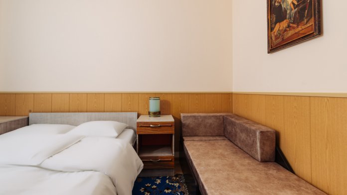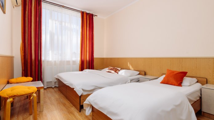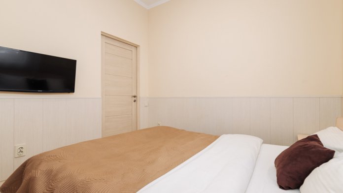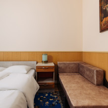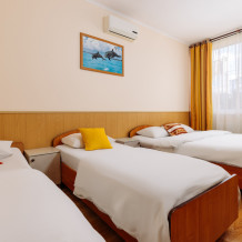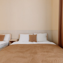 Комфортный, светлый номер, в котором могут разместиться до 4 гостей. В комнате одна двуспальная, одна односпальная кровати, а также софа для 1 гостя.