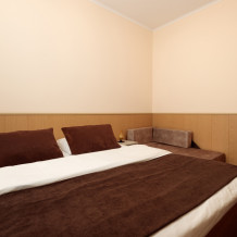 Комфортные, уютные апартаменты в которых могут разместиться до 3 гостей. В отдельной спальне одна двуспальная и одна односпальная кровати.