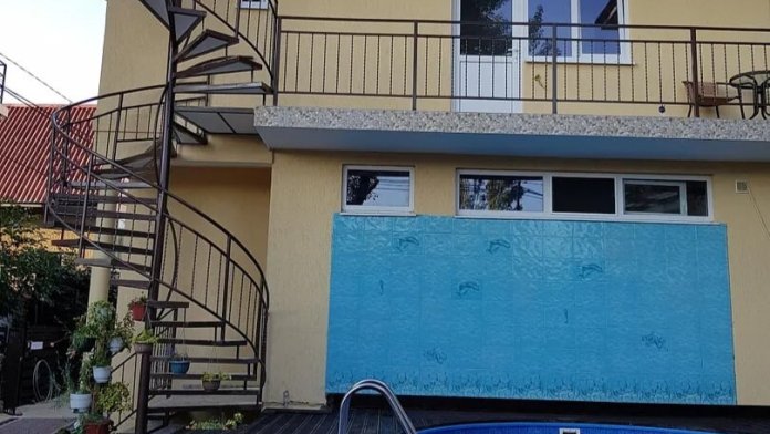 Есть общая кухня на два номера, в которой есть холодильник, плита, набор необходимой посуды. Номер находится на 2, 3 этажах. С общего балкона открывается прекрасный вид на бассейн и море.