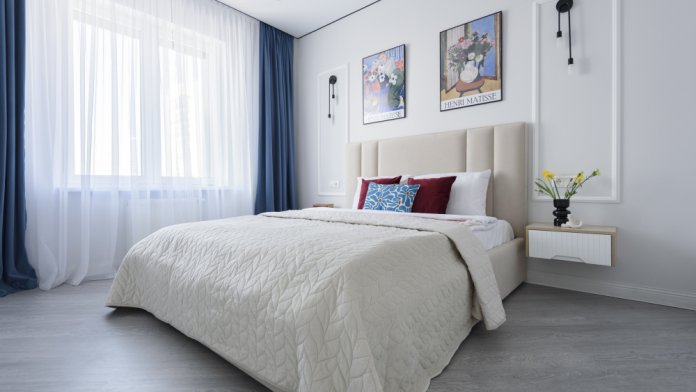- Удобную двуспальную кровать с ортопедическим матрасом и раскладной диван для двух дополнительных мест.