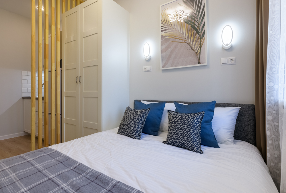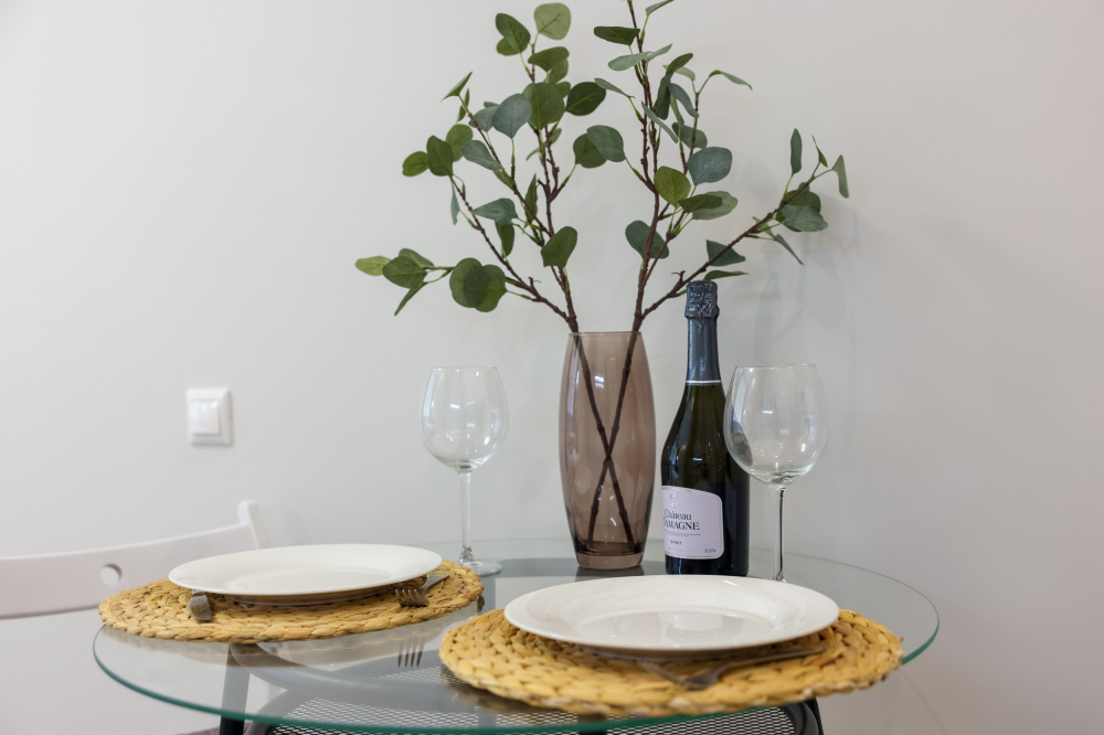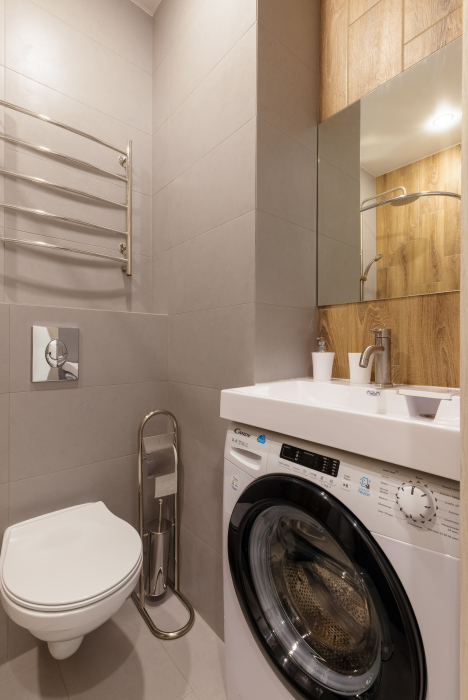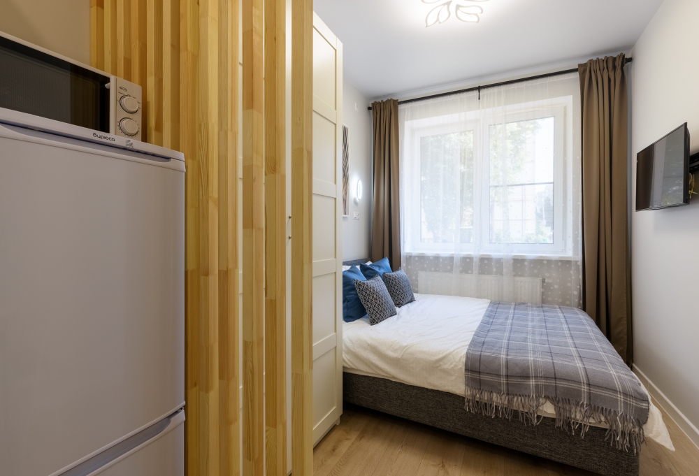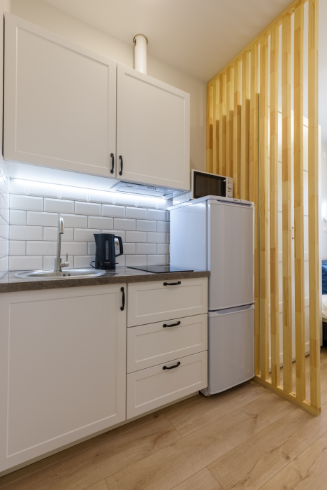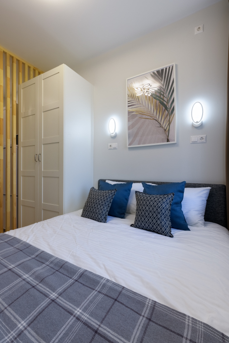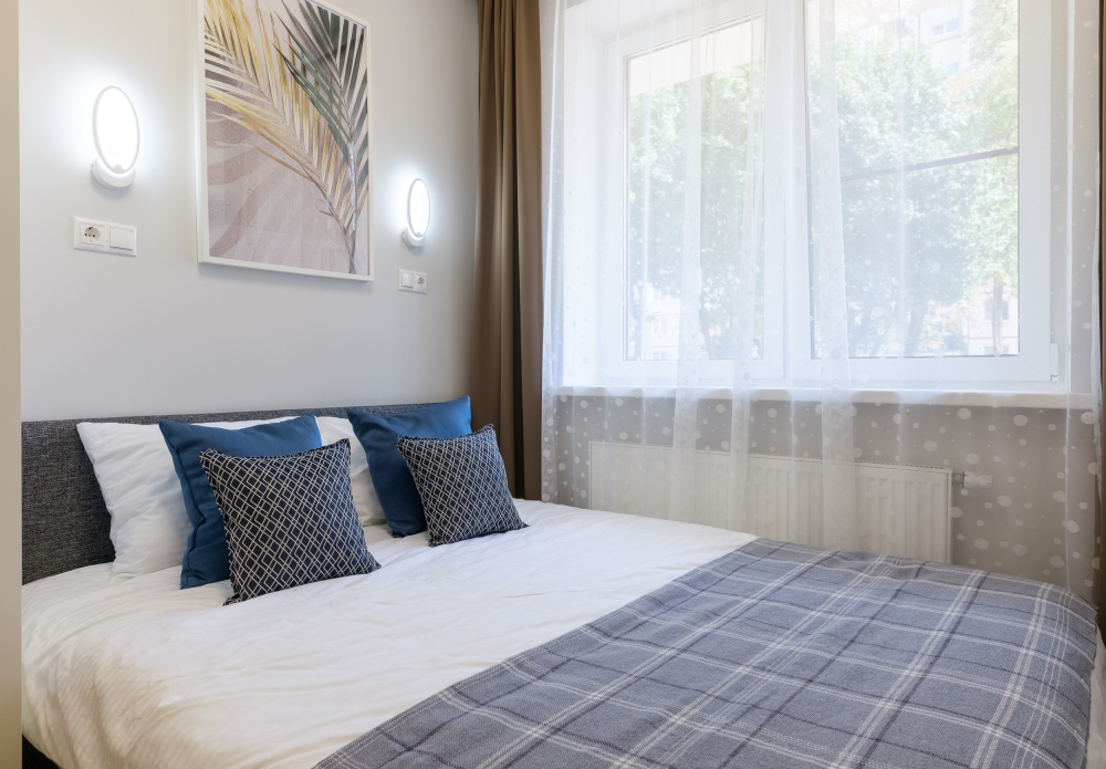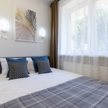 В апартаментах есть всё самое необходимое: телевизор, Wi-Fi, фен, утюг, стиральная машина, чайник, микроволновая печь, плита, холодильник, столовые приборы и базовая посуда, чай и кофе. Мы предоставляем нашим гостям полотенца, гель для душа, свежее постельное белье и тапочки.