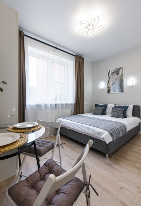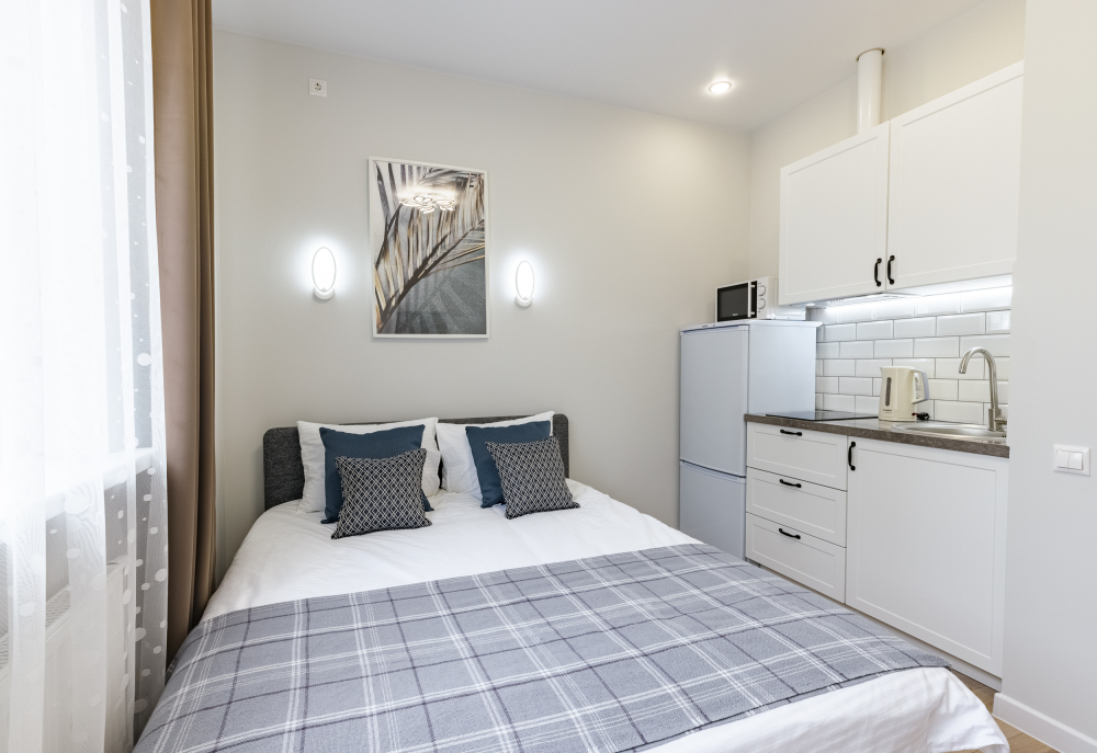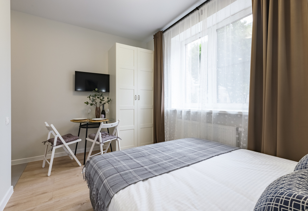 В апартаментах есть всё самое необходимое: телевизор, Wi-Fi, фен, утюг, стиральная машина, чайник, микроволновая печь, плита, холодильник, столовые приборы и базовая посуда, чай и кофе. Мы предоставляем нашим гостям полотенца, гель для душа, свежее постельное белье и тапочки.
